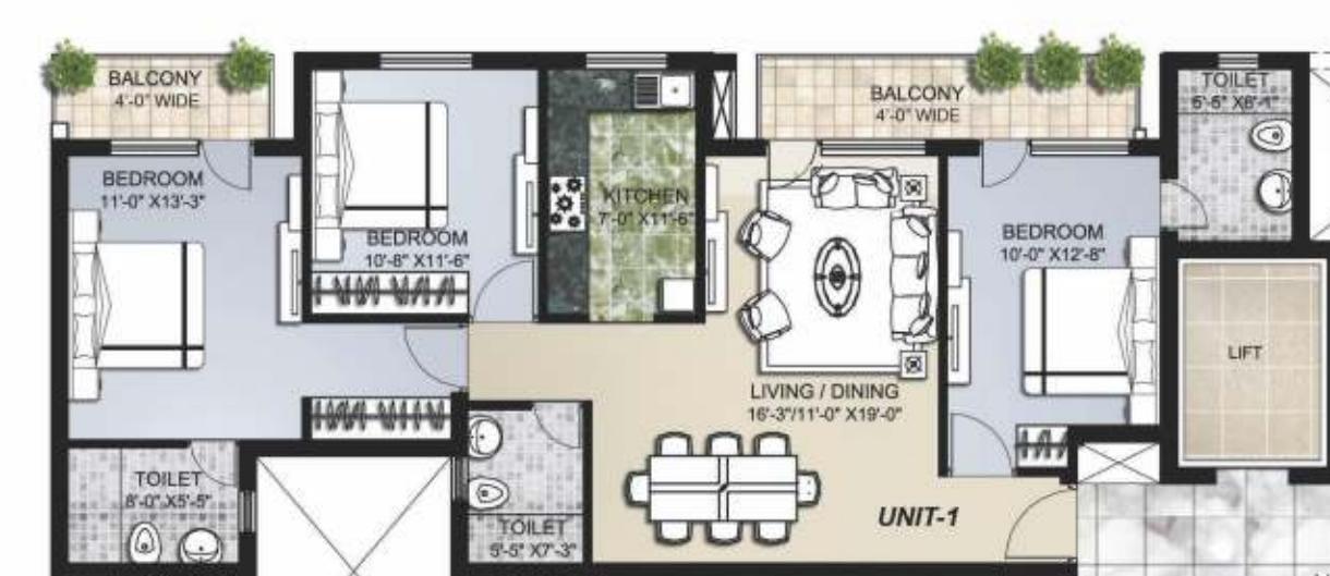 Omaxe The Lake 1427 Sqft 2bhk 6th Floor 1.15 cr